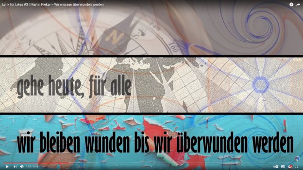 Das erste Kapitel dieses Gedichtbandes hat Robert Gaude visualisiert. Ich bin sehr dankbar für seine Arbeit und hier auf youtube ist das ganze anzuschauen: wir müssen überwunden werden – visualisiert von Robert Gaude! Dankeschön. 🖤
